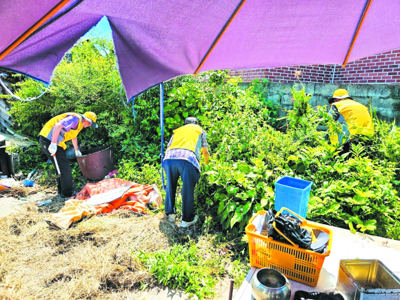 고성노인대학봉사단(단장 강병구)은 지난달 24일 고성읍 무량리에 거주하는 독거노인 가정을 방문해 환경정화 봉사활동을 펼쳤다. 강병구 단장과 회원 등 20여 명은 차 모 씨의 집을 찾아 집 주변과 하천 구석구석에 버려진 쓰레기를 치우고 잡초를 제거해 안전하고 위생적인 환경을 만들었다. 또한 부엌과 냉장고 등 손이 많이 가는 집안일을 돕고 청소하며 건강과 위생 관리에 신경을 썼다.