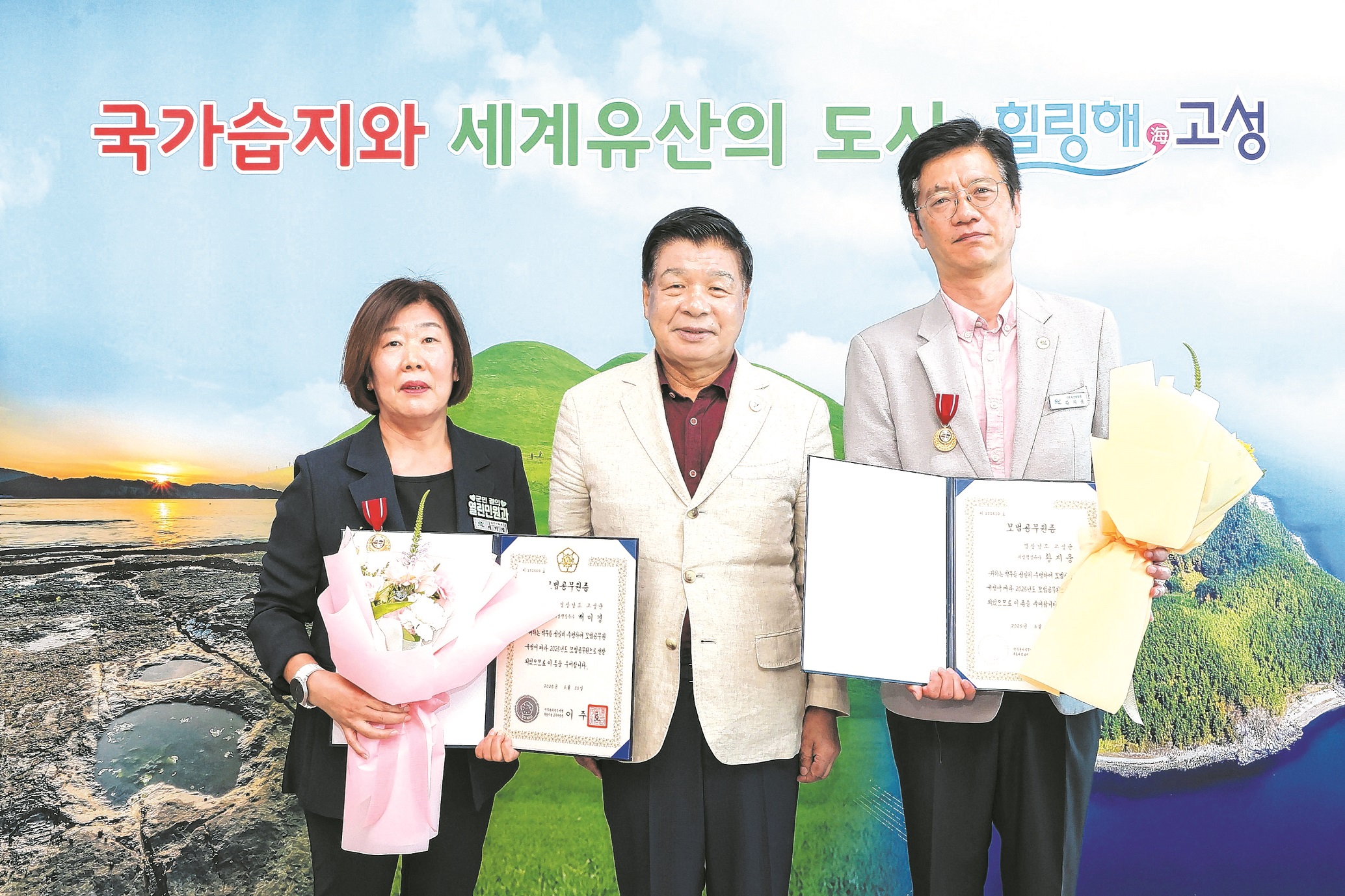 고성군은 8월 22일 군수실에서 2025년 상반기 정부 모범 공무원으로 선정된 2명에게 표창을 수여했다. 수상자는 기획예산담당관 황지웅 담당과 열린민원과 배미경 담당이다. 황지웅 담당은 국무총리상을 받았다. 그는 직전 상하수도사업소 시설관리담당으로 근무하며 고성공공하수처리시설과 면·마을 단위 중계펌프장을 효율적으로 운영했다. 또 고성 생태학습관과 연꽃공원 야외시설물을 개보수해 공공하수처리시설의 이미지를 높이는 데 기여했다.