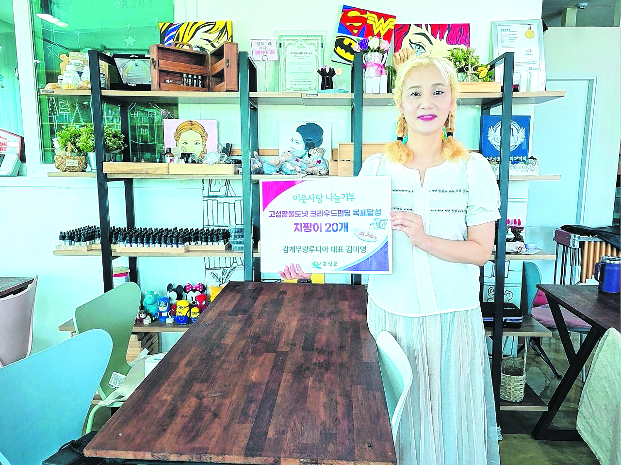 고성군 감개무량루디아 김미영 대표가 지역 어르신들의 안전한 보행을 돕기 위해 지팡이 20개를 기탁했다. 김 대표는 8월 22일, 지난해 고성군농업기술센터와 함께 진행한 ‘고성팥물도넛’ 크라우드펀딩이 목표를 달성한 것을 기념해 이번 기부를 마련했다고 밝혔다. 크라우드펀딩은 고성팥물도넛 생산과 홍보를 위해 추진됐으며, 많은 주민들의 참여와 호응 속에 성공적으로 마무리됐다.