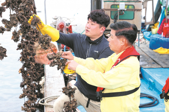 이상근 군수, 빈산소수괴로 피해 입은 굴·가리비 양식장 방문