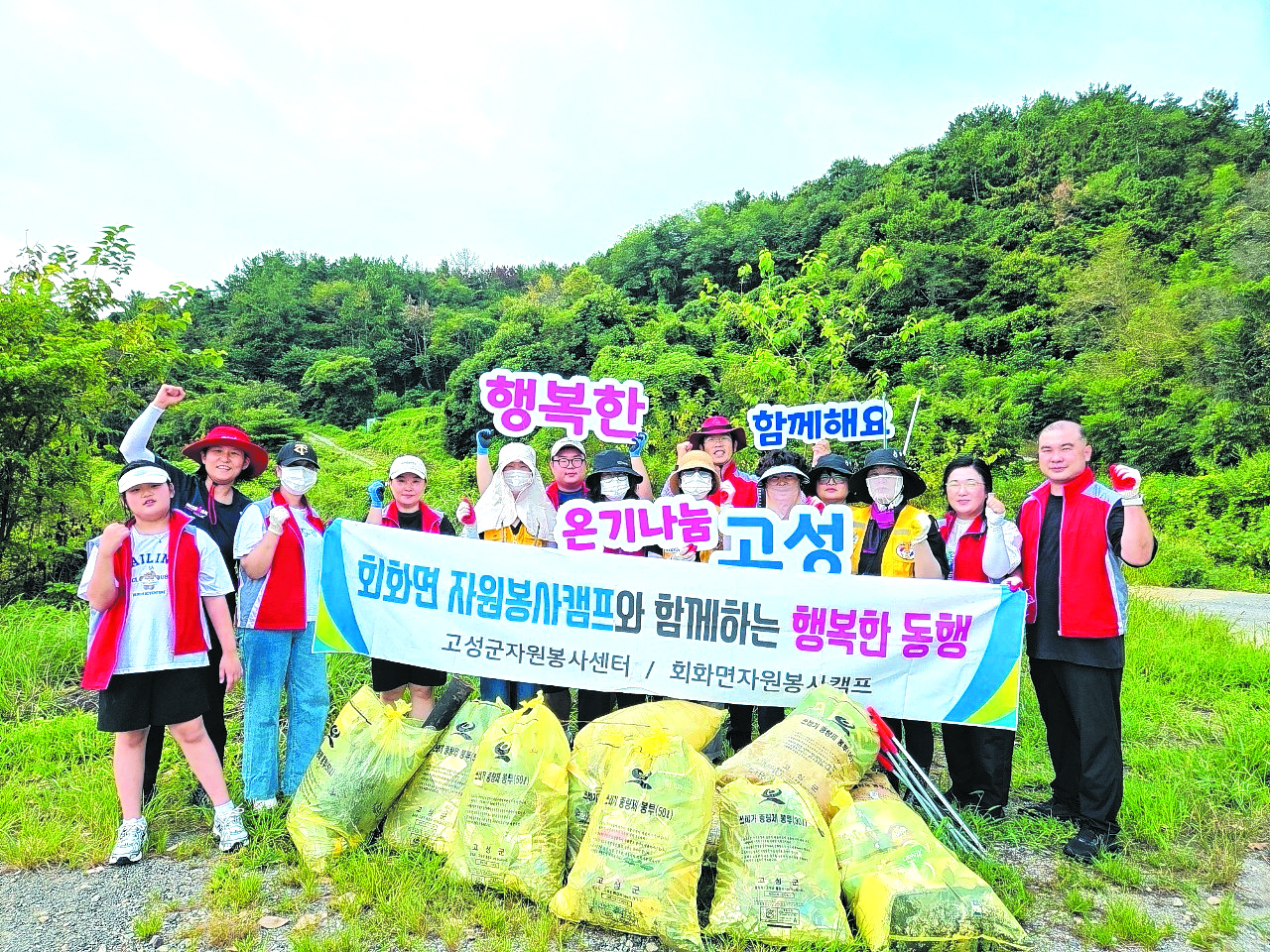 고성군자원봉사센터가 운영하는 회화면 자원봉사 캠프(캠프장 최종숙)는 지난 6일 회화면 일원에서 ‘우리동네 플로깅, 깨끗한 회화면 만들기’ 활동을 펼쳤다. 이날 활동에는 회화면 캠프지기와 자원봉사자, 회화면 적십자봉사회원 등 20여 명이 참여했다. 참가자들은 마을 안길과 해안탐방로 주변에 버려진 생활쓰레기 500㎏을 수거하며 구슬땀을 흘렸다. 이번 플로깅 캠페인은 단순한 환경정화를 넘어 군민들에게 환경보호의 중요성과 자원봉사 참여의 가치를 알리고, 일상 속에서 쉽게 실천할 수 있는 봉사문화 확산에 의미를 더했다.