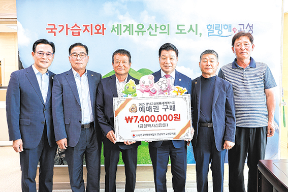 (사)전국 이통장연합회 경상남도지부와 고성군지회(지회장 배삼태)가 2025경남고성공룡세계엑스포의 성공적인 개최를 위해 지난달 23일 각각 1천만 원과 740만 원 상당의 예매권을 구입했다. 송강훈 경상남도지부장은 “경남의 대표축제인 공룡엑스포에 도내 이통장과 가족들이 함께 했으면 하는 마음에서 예매권 구매를 결심했다”라고 말했다. 배삼태 고성군지회장은 “올해의 공룡엑스포는 어린이뿐만 아니라 중장년층이 즐길 수 있는 대형 플라워사우루스, 플라워 동산, 중국 서커스 등 세대를 아우르는 콘텐츠를 준비하는 것으로 알고 있다”라며 “고성 관내 읍면의 이장님들과 군민들이 엑스포 행사장을 꼭 방문하기를 바란다”라고 당부했다.