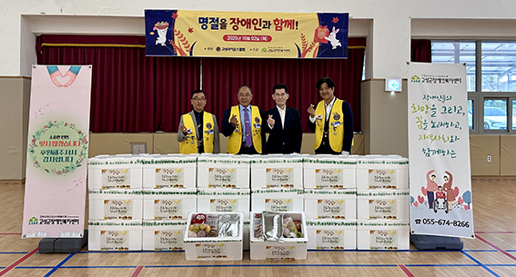 고성군장애인복지센터(센터장 김도현)는 지난 2일 추석을 앞두고 지역 내 취약계층 장애인 20가정에 명절선물꾸러미를 전달했다. 이번 행사는 고성라이온스클럽(회장 차성만)의 후원으로 마련됐으며, 150만 원 상당의 후원금을 더해 고기와 과일, 레토르트 식품 등으로 구성된 꾸러미를 전달했다. 차성만 회장은 “민족의 명절을 맞아 도움이 필요한 이웃에게 작은 힘을 보태고자 했다”며 “함께 나누고 성장하는 라이온 정신 아래 지역사회 나눔 문화 확산에 앞장서겠다”고 말했다. 김도현 센터장은 “매년 취약계층을 위해 꾸준히 나눔과 봉사를 실천해주고 있는 고성라이온스클럽과 본 기관에 후원해 주시는 다른 모든 분께 큰 감사를 전한다"라며, “명절은 가족이 함께 모여 따뜻함을 나누는 소중한 시간인데, 경제적 형편 때문에 소외감을 느끼는 장애인 가정이 없도록 이번 행사를 준비했다. 저희의 방문과 지역사회의 나눔의 손길을 통해 조금이나마 보탬이 됐길 바라며 앞으로도 지역 내 장애인 가정의 삶의 질 향상을 위해 다양한 지원과 나눔 활동을 지속하겠다”라고 밝혔다. 고성군장애인복지센터는 앞으로도 다양한 기관·단체와 협력해 취약계층 지원 활동을 이어갈 계획이다.