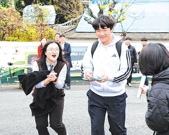 2026학년도 대학수학능력시험이 지난 13일 전국 85개 시험지구 1천310개 시험장에서 일제히 치러진 가운데 고성군 내에서는 모두 375명이 응시한 것으로 나타났다. 고성군에서는 남학생 211명이 철성고, 여학생 164명이 고성중앙고에서 각각 시험을 치렀다. 이는 지난해 응시자 337명보다 38명 증가한 숫자다. 고성교육지원청에 따르면 올해 군내 수능 응시생은 고성중앙고등학교가 130명, 철성고등학교 96명, 고성고등학교 111명, 경남항공고등학교 7명, 경남음악고등학교 21명, 검정고시 10명 등이 응시한 것으로 나타났다. 각 학교별 응시생은 재학생과 재수생이 포함됐다. 수능 시험 당일인 13일에는 구름만 약간 낀 가운데 응시생들이 입실할 당시 기온은 10℃ 내외로, 올해는 수능 한파가 없었다. 올해 수능 시험은 별다른 사고 없이 차분한 분위기 속에서 치러졌다. 두 곳의 시험장 앞에서는 이른 아침부터 선배와 제자들을 응원하는 후배, 교사들이 응원전을 펼쳤다. 응원전은 예년처럼 떠들썩한 분위기 대신 입실하는 선배들에게 따뜻한 차와 손난로를 전하며 파이팅을 외치는 정도였다. 또한 교사들은 오랫동안 준비해 시험을 치르는 제자들에게 응원의 말과 함께 손을 잡고 어깨를 토닥이며 격려했다. 이날 시험장 앞에서는 이상근 군수, 전제동 고성교육장, 허동원 도의원, 이정숙 의원, 이진만 고성군청소년센터 온 센터장, 조형래 철성고등학교장 등을 비롯해 교육 관련 단체, 고성교육지원청 관계자 등이 함께 응원했다. 오전 8시 10분까지 입실한 수험생들은 8시 40분 1교시 국어시험을 시작으로 오후 5시 45분까지 시험을 치렀다. 영어 듣기평가가 치러지는 오후 1시 10분부터 20분간은 마을방송이나 공사 등 소음을 방지하는 조치를 했다. 고성경찰서에서는 학생들의 입실 시간과 듣기평가 시간에 시험장 주변에서 교통 지도를 펼치는 등 수험생들의 안전과 원활한 시험 진행을 위해 지원했다. 2026학년도 수능 성적은 12월 5일 수험생에게 통보되며, 문항 및 정답 이의 신청은 11월 13일부터 17일 18시까지 한국교육과정평가원 홈페이지에서 접수하며, 최종 정답은 11월 25일 오후 5시에 발표된다. 수능 성적표는 다음 달 6일부터 2025년 1월 10일까지 오프라인으로 발급된다. 대학수학능력시험 성적증명서 발급 시스템을 통해 다음 달 9일부터 온라인 발급도 가능하다. |