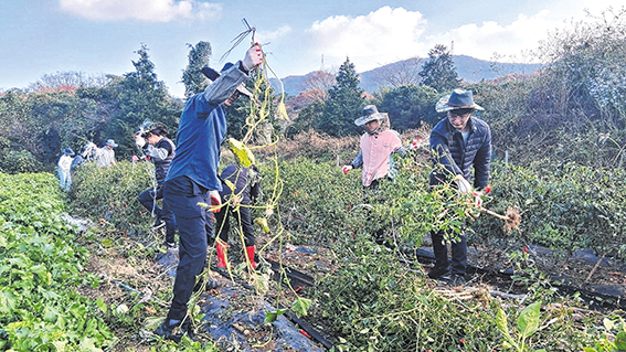 고성군 재무과 직원들이 농번기 일손 부족으로 어려움을 겪는 농가를 돕기 위해 가을 들녘으로 나섰다. 고성군 재무과(과장 오은겸)는 지난 7일 대가면 장전마을의 한 농가를 찾아 고춧대 철거 작업을 도왔다. 이날 재무과 직원 10여 명은 바쁜 행정 업무를 잠시 내려놓고 고추대를 뽑고 묶으며 구슬땀을 흘렸다. 장전마을은 고령화로 인해 매년 농번기마다 인력 확보에 어려움을 겪고 있다. 이번 일손돕기는 마을 주민들의 요청에 따라 진행됐으며, 직원들은 오전 내내 부족한 일손을 보태며 수확 후 농가의 부담을 덜었다. 한 농가는 “수확 후 남은 고춧대를 정리하려니 허리가 아파 엄두가 안 났는데 군청에서 직접 도와줘 큰 힘이 됐다”며 고마움을 전했다. 참여한 한 직원은 “사무실을 벗어나 흙을 밟으며 일하다 보니 힘들었지만 마음은 뿌듯했다”며 “짧은 시간이었지만 농민들의 수고를 새삼 느낄 수 있는 뜻깊은 시간이었다”고 말했다. 오은겸 재무과장은 “앞으로도 농가의 인력난 해소와 지역 상생을 위해 꾸준히 일손돕기를 이어가겠다”고 밝혔다. |