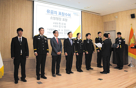 고성소방서가 제63주년 소방의 날을 맞아 기념행사와 표창 수여식을 열고 국민 안전을 위한 소방의 역할과 책임을 되새겼다. 고성소방서(서장 김성수)는 지난 7일 본서 대회의실에서 ‘제63주년 소방의 날’ 기념행사와 표창장 수여식을 개최했다. 이번 행사는 화재 예방과 안전문화 확산의 공감대를 형성하고, 소방공무원의 자긍심을 높이기 위해 마련됐다. 이날 행사에는 소방공무원과 관계자들이 참석해 소방의 날을 기념하고, 소방발전에 공헌한 직원과 시민들에게 표창을 수여했다. 대통령상은 곽평준 소방령을 비롯해 소방공무원 13명이, 소방청장상은 고성그린파워 김수석 본부장과 삼열전기 김성진 대표를 포함한 일반인 14명이 받았다. 또한 행사장에서는 소방장비 전시와 소방드론 비행 시연회가 진행돼 참석자들에게 우리 소방의 우수한 장비와 역량을 선보였다. 이어 오찬과 다과회, 한마음 체육행사를 통해 직원들의 사기와 화합을 다지는 시간도 가졌다. 김성수 서장은 “이번 소방의 날 행사는 국민 안전을 지키는 119소방의 사명을 다시 새기는 뜻깊은 자리였다”며 “앞으로도 소방인으로서의 긍지와 책임을 다해 안전한 지역사회를 만드는 데 힘쓰겠다”라고 말했다. |