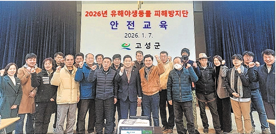 고성군이 2026년 유해야생동물 피해방지단 운영을 앞두고 지난 7일 안전교육을 실시했다. 피해방지단은 오는 10일부터 12월 20일까지 본격적인 활동에 들어간다. 이번 교육은 포획 활동에 따른 안전사고를 예방하고 현장 대응 능력을 높이기 위해 마련됐으며, 고성경찰서와 합동으로 진행됐다. 교육에서는 야생동물 보호와 관리에 관한 법률 준수 사항을 비롯해 총기 사용 안전 수칙, 상황 발생 시 응급조치 요령, 아프리카돼지열병(ASF) 차단 방역 등을 중점적으로 다뤘다. 유해야생동물 피해방지단은 멧돼지와 고라니 등 유해야생동물로 인한 농작물 피해 신고가 접수되면 현장에 출동해 포획 활동을 펼친다. 이와 함께 교통사고나 질병 등으로 부상당한 야생동물에 대한 구조 활동도 병행하고 있다. |