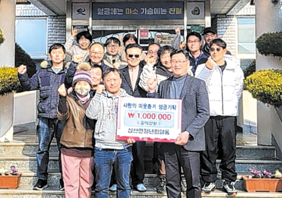 삼산면청년회(회장 심창훈)는 지난 23일 연초를 맞아 생활고를 겪고 있는 지역 취약계층 이웃을 돕기 위해 성금 100만 원을 기탁했다. 이번 성금은 삼산면청년회 회원들이 뜻을 모아 마련한 것으로, 새해를 맞아 소외된 이웃들이 따뜻한 마음으로 한 해를 시작하길 바라는 취지에서 추진됐다. 심창훈 회장은 “작은 정성이지만 어려운 이웃들에게 조금이나마 위로와 힘이 되길 바란다”라며 “앞으로도 지역사회와 함께하는 청년회로서 나눔 활동을 이어가겠다”라고 밝혔다.