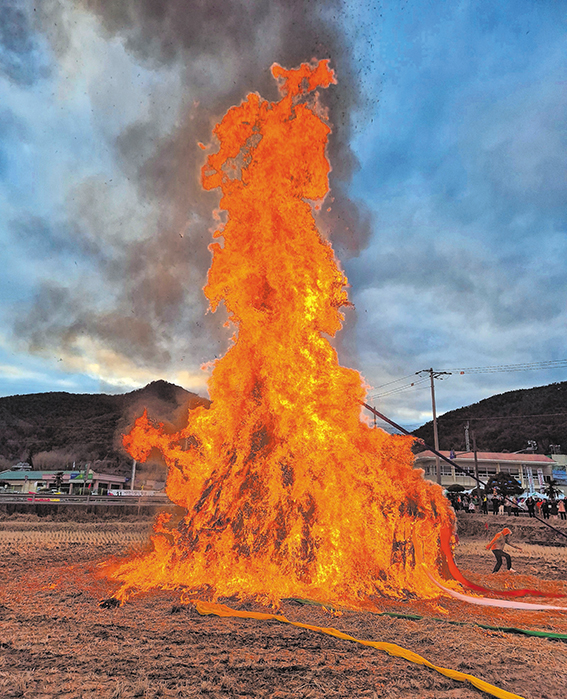 병오년 첫 보름달이 뜬 음력 1월 15일, 정월대보름. 대가면 유흥리 대가면사무소 앞에는 대가면청년회가 전날부터 준비한 달집이 활활 타오르며 풍년과 건강을 기원했다. 이날 저녁 달이 뜬 후에는 개기월식이 진행되면서 달이 지구의 그림자에 가려 붉게 물드는 블러드문도 볼 수 있었다. 설날이 새해가 시작됨을 알린다면 보름달이 둥실 떠오르는 대보름은 농사의 문을 여는 날이다. 그러니 조상들은 정월대보름을 설, 추석만큼이나 중요하게 여겼다. 마을공동체가 함께 안녕과 복을 기원하는 정월대보름, 고성에도 평안과 만복이 찾아오기를.
