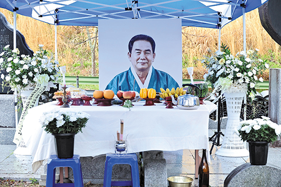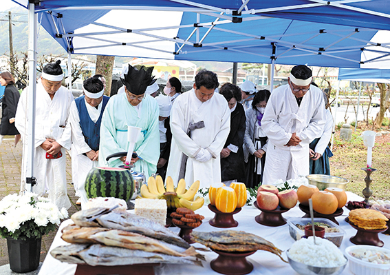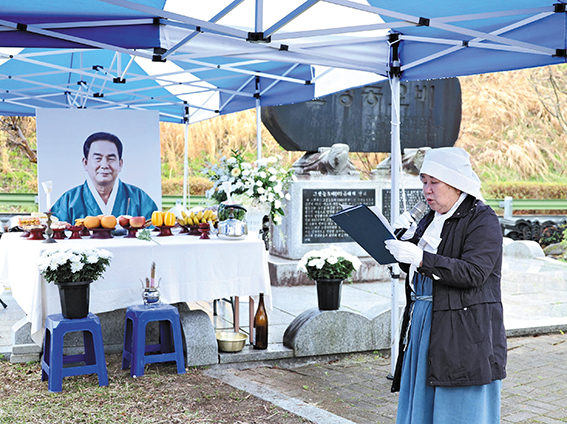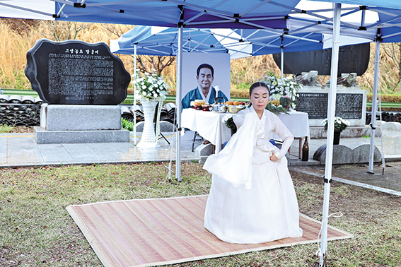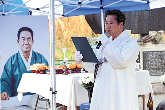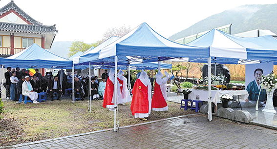 지난 2월 20일 타계한 고성농요 김석명 명예보유자의 추모제가 열려 고인을 기렸다. 국가무형유산 고성농요보존회(회장 신명균)는 지난 9일 상리면 척번정리 농요발굴비 앞에서 김석명 명예보유자 추모제를 열었다. 이 자리에는 김석명 명예보유자의 제자이자 동료인 고성농요보존회원들을 비롯해 유가족과 지인 등이 모여 고인의 삶과 업적을 기렸다. 강옥선 전승교육사는 조사를 통해 “우리가 부르는 고성농요의 한 소리, 한 장단 속에는 선생님의 삶과 열정, 그리고 깊은 뜻이 함께 담겨 있다”라면서 “오늘 우리는 선생님이 남기신 고성농요 소리를 다시 떠올리며, 이를 이어가겠다는 다짐과 함께 깊은 감사와 존경의 마음을 담아 허리 숙여 추모한다. 평생 지켜온 농요의 소리는 앞으로도 오랫동안 우리 삶 속에 함께할 것”이라며 고인을 추모했다. 신명균 회장은 추도사를 통해 “선생님의 삶은 곧 고성농요 그 자체”라면서 “들판에 울려 퍼지던 한 소절 한 소절 속에는 선생님의 숨결과 땀이 고스란히 담겨 있다. 이제는 그 따뜻한 음성과 미소를 더 이상 뵐 수 없다는 사실이 믿기지 않고, 그 빈자리는 이루 말할 수 없이 크게만 느껴진다”라고 말했다. 신 회장은 “선생님께서 우리에게 남겨주신 소리와 정신은 여전히 살아 숨 쉬며 앞으로도 우리 곁에 함께할 것”이라면서 “고성농요보존회는 선생님의 뜻을 가슴 깊이 새기고, 평생 지키신 이 소중한 유산을 정성껏 이어가며 가르침을 잊지 않고 묵묵히 걸어가겠다”라고 덧붙였다. 조규춘 고성농요후원회장은 “고성농요를 일구고 꽃피우신 김석명 선생님은 구슬픈 가락 속에 담긴 민초들의 삶을 예술로 승화시켰고, 그 끈질기고 숭고한 노력 덕분에 고성농요는 국가무형유산이라는 고귀한 이름을 얻게 됐다”라면서 “이제 선생님의 육성은 들을 수 없지만, 선생님께서 지켜오신 농요는 산천과 우리 가슴 속에 영원히 살아 숨 쉴 것이다. 우리 후원회는 이 소중한 유산을 보존하고 그 뜻을 이어가는 데 정성을 다하겠다”라며 명복을 빌었다. 이날 추모제에서는 유여정 이수자의 살풀이에 이어 고성농요보존회원들의 바라춤으로 고인의 가는 길을 배웅했다. 또 고인의 생전 모습과 신념을 담은 영상을 함께 시청하며 고인을 추모했다. 김석명 명예보유자는 교사로 재직하던 1970년대부터 지역 곳곳에 남아 있던 농·민요를 발굴하고 채록하는 데 힘을 쏟으며 전승 기반을 다져 왔다. 김석명 명예보유자는 1977년 고성농요 전수회를 창립해 전승 공동체의 틀을 마련했다. 이후 고성농요는 국내외 시연과 초청공연, 교육 활동 등으로 전승의 맥을 이으며 1985년 국가무형문화재로 지정됐다. 그는 1992년 국가무형문화재 고성농요 보유자로 인정받아 전승자 양성과 보급 활동을 맡았다. 특히 여러 소리꾼과 일꾼들의 장단과 호흡을 이끄는 앞소리를 바탕으로 고성농요의 중심 가락을 지켜 왔다. 또 국가유산 기록화 사업 과정에서도 실연과 구술을 통해 고성농요의 유래와 전 과장이 기록으로 남게 하는 데 힘을 보탰다. 김석명 명예보유자는 건강상 이유로 전승활동이 어려워지면서 2023년 5월 명예보유자로 인정받았다.